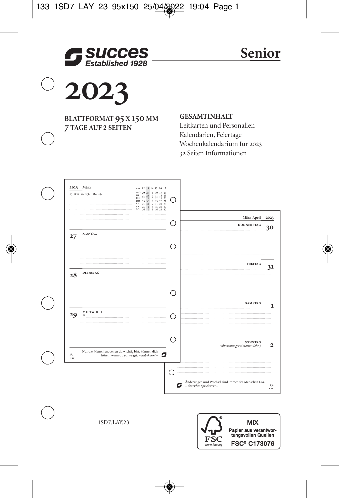 Succes Jahresbox Senior 7 Tage auf 2 Seiten Deutsch 2026